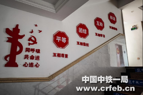 走進梅龍鐵路項目部一樓大廳,一股濃厚的滿是“正能量”的“家”氣息撲鼻而來。正對門口的前臺臺身張貼著“追求卓越是我們的人生品格”的相當于“家規家風”“企業核心價值觀”。她提供著使項目部員工共同遵守并身體力行的生活、成長環境。左側電梯門上方“我的企業我奮斗”口號,振奮著員工要為代表一公司的項目部這個家里盡心盡力的斗志。前臺后方的“主題教育”標語與左側墻面上電子屏上的《一圖讀懂二十大報告精神》,昭示了項目部員工有一個濃厚的使人健康成長的學習氛圍。