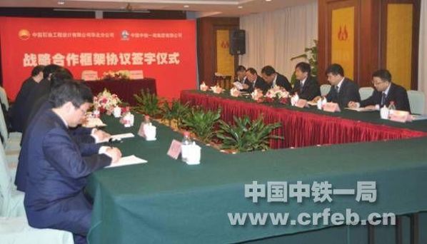 郭民龍與張振庭在會上簽訂了《中國中鐵一局集團有限公司與中國石油工程設計有限公司華北分公司戰(zhàn)略合作框架協議》。