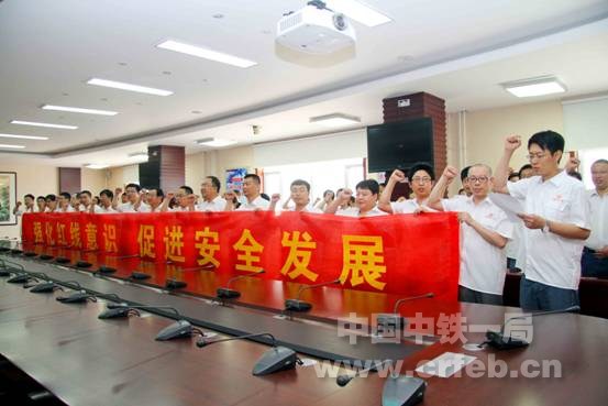 “我是一名中國中鐵員工,我鄭重承諾:遵守規(guī)章制度、遵守規(guī)范規(guī)程,不出事故、不出次品、不留隱患!以實際行動,確保企業(yè)生產(chǎn)安全、產(chǎn)品優(yōu)質(zhì)……”莊嚴(yán)的宣誓聲在橋梁公司門口的廣場上久久回蕩。5月30日上午,集團公司各單位分別舉行“安全生產(chǎn)月”宣誓活動,各單位領(lǐng)導(dǎo)及員工莊嚴(yán)誓言,堅決守住安全生產(chǎn)紅線,確保安全生產(chǎn)。