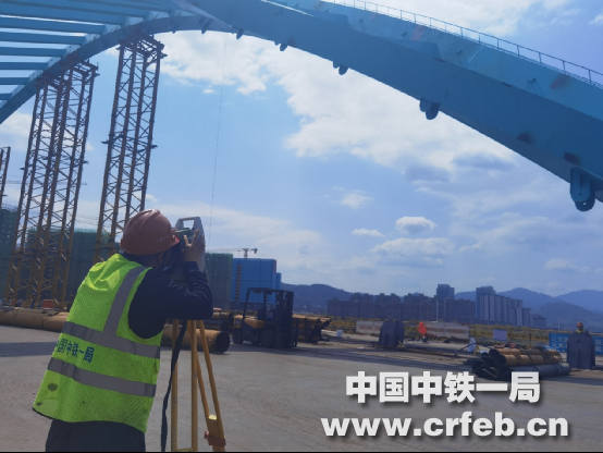 施工中,中鐵一局項目團隊堅持“高精度、高效率”施工標準,有序推進主副拱支架卸載、支座鎖定、系桿張拉、吊桿張拉及主梁支架拆除五個環節。系桿、吊桿安裝前,技術人員采用測繩、全站儀等多種形式對吊桿長度進行測量、復核,實現吊桿生產合格率100%;支座灌漿前,試驗室提前對灌漿料各項性能指標進行檢測,以保證灌漿密實、強度達標;預應力施工中,項目積極聯合監控及監理單位,安裝張拉全工序管控,張拉過程中統一指揮,嚴格遵循力值與伸長量雙控的原則,對稱鋼束兩端同步分級張拉,最終數據均在誤差允許范圍內。