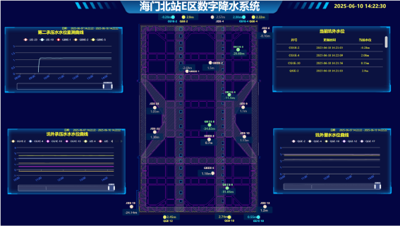 基坑智慧化降水系統實現降水技術的信息化、自動化和智能化?;娱_挖提前研判基坑變形數據,支撐設計采用伺服補償,實現支撐整體結構受力分布均勻,動態分區進行開挖,做到及早形成新的支撐受力結構,實現支撐軸力的實時監測及調控;自動化沉降位移監測系統讓監測數據更高效、精準、快速。