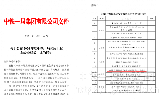 近日,公司能源四路雨水泵站項(xiàng)目榮獲陜西省西咸新區(qū)城建投資集團(tuán)“2024年度安全生產(chǎn)先進(jìn)單位”及中鐵一局“2024年度安全樣板工地”稱號(hào)。