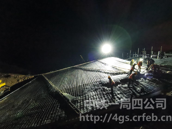 為確保鋼架橋首段面板砼澆筑順利,各方統籌規劃,現場施工嚴格按照專項方案進行,現場技術負責人對每道工序嚴格審核、牢牢把關,對基礎施工、鋼結構吊裝和焊接、腳手架搭設、混凝土澆筑等環節進行層層把控,確保澆筑施工質量和安全。為保證冬季澆筑施工質量,采用混凝土入模前測溫,澆筑完成后及時覆蓋保溫棉被等措施。項目嚴把方案審查及材料質量關,不斷優化施工組織,持續強化過程控制,采用兩臺高壓地泵接力,實現高差150米、長度660米的砼泵送,歷經7小時的連續作業,最終圓滿完成首次橋面板澆筑任務。