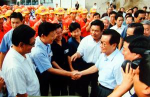 政協(xié)主席李瑞環(huán)視察西康鐵路秦嶺隧道工程時(shí)與中鐵一局領(lǐng)導(dǎo)親切握手