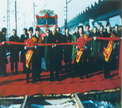 1992年12月21日全國人民代表大會(huì)常務(wù)委員會(huì)委員長(zhǎng)萬里為大(同)秦(皇島)鐵路二期通車剪彩