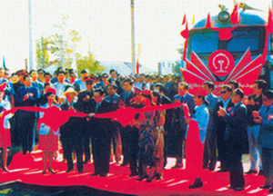 1990年9月1日,中共中央總書記江澤民,在烏魯木齊西站為集團(tuán)公司參建的南疆鐵路通車剪彩