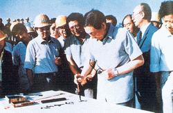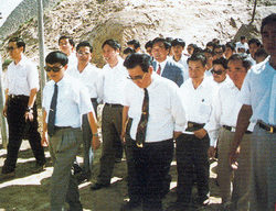 李鵬委員長(zhǎng)視察中鐵一局承建的甘肅引大入秦水利工程