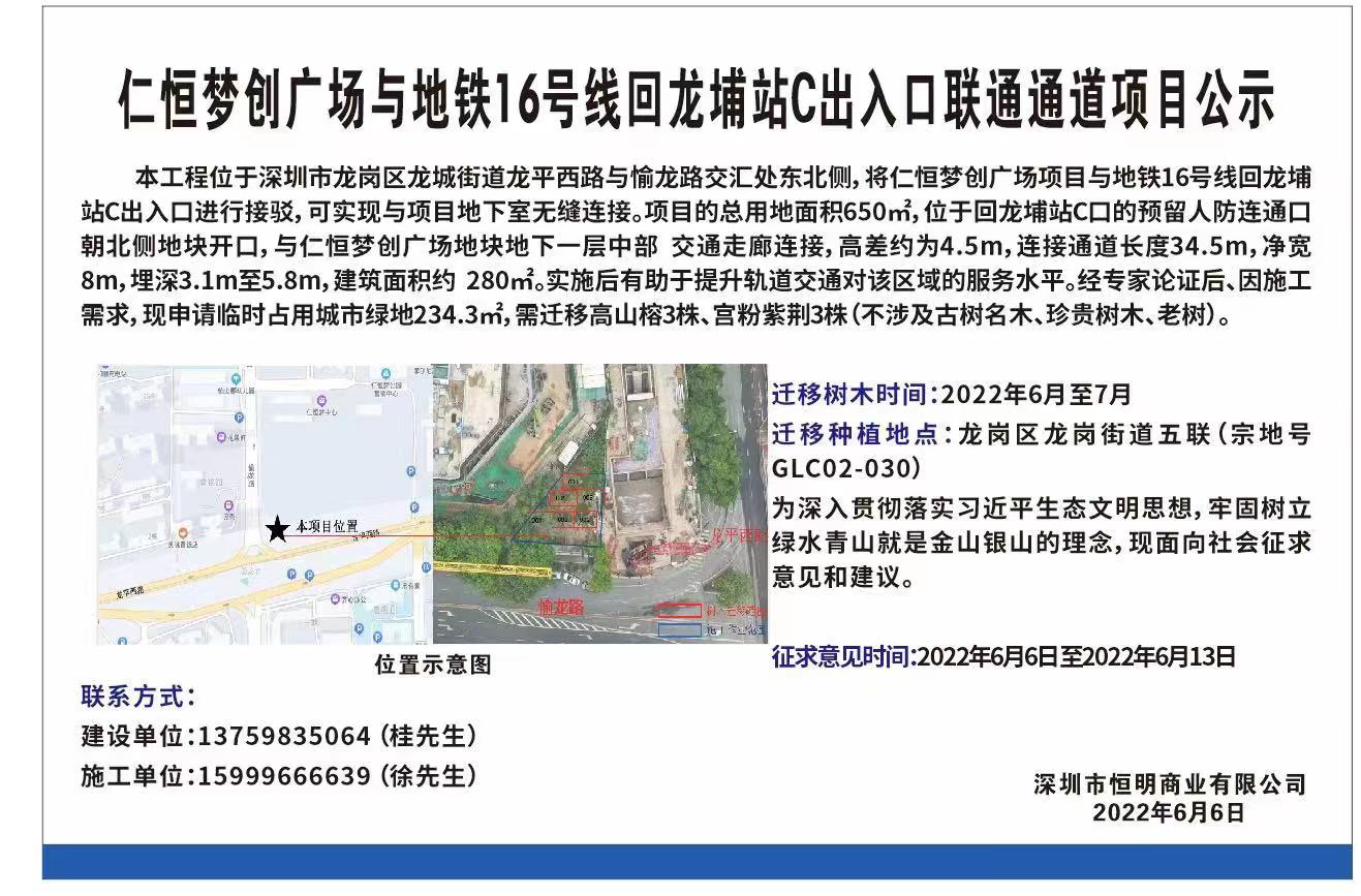 仁恒夢創(chuàng)廣場與地鐵16號(hào)線回龍埔站C出入口聯(lián)通通道項(xiàng)目公示