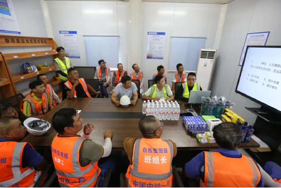 白天的施工作業后,項目副經理閆方和工程部副部長馬宗炳、楊有為等人按照慣例,將新陽路站自控型班組的工人們組織到現場會議室召開晚間交班會,對白天的作業情況進行復盤,對施工現場出現的問題進行討論并形成處理方案,同時對接下來的工作進行具體排班,確保做到分工清晰,責任明確。
