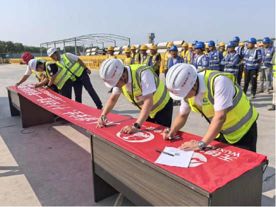 “我是一名中國中鐵員工,我時刻銘記:安全是勇于跨越的基石,質量是追求卓越的支柱……”錚錚誓詞回蕩耳畔,全員在主題橫幅上鄭重簽名,用簡單卻嚴肅的儀式喚醒安全責任意識,拉開了安全月活動的序幕。