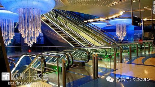 迪拜現(xiàn)在的地鐵系統(tǒng)使用的是無(wú)人駕駛車(chē)輛。在Khalid Bin Al Waleed站,乘客們可以抬頭看見(jiàn)天花板上美麗的水母,仿佛身處于海洋世界。
