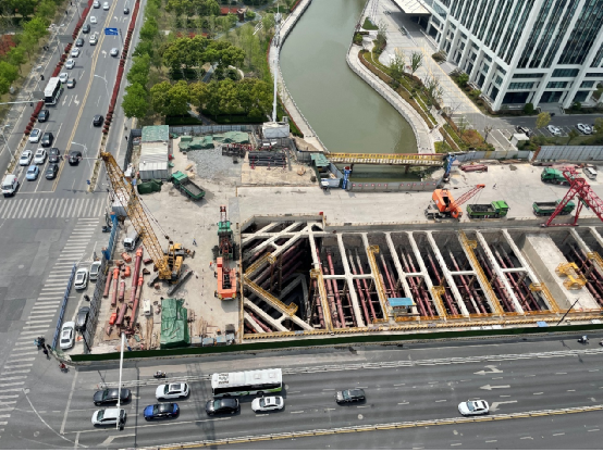 上海市域嘉閔線全長44.04公里,共設15座車站。其中,中鐵一局城軌公司承建的七莘路站為項目的關鍵節點工程,該站為地下三層雙柱三跨島式車站,基坑主體長達474米,標準段寬23.2米,施工區域地質條件復雜,技術挑戰嚴峻。