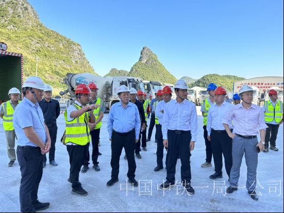 11月7日,廣西交投集團公司黨委書記、董事長周文率隊到公司桂鐘高速5標項目檢查,充分肯定了項目部在標準化建設及安全質量管控等方面工作。廣西交投副總經理黃德耕,中鐵一局一公司黨委書記、執行董事張敏等有關領導隨行檢查。