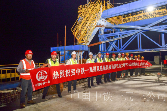 5月20日凌晨,公司承建的揭惠鐵路控制性工程跨梅汕高鐵特大橋上跨揭普惠高速公路連續剛構箱梁中跨順利合龍,標志著揭惠鐵路建設取得重大突破,為打通架梁通道奠定了基礎。