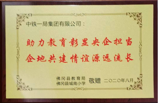 面對壓力山大,項目部不等不靠,主動出擊,一手抓防疫,確保員工健康和物資設備及時到場;一手抓生產,派出專車赴外省點對點迎接作業(yè)人員進場,“三班倒”加緊施工,夜以繼日奮戰(zhàn),接連攻克工期緊任務重、工程量大、水電管線布設等交叉作業(yè)多諸多難關,在8月27日,一座嶄新的干凈漂亮的建筑物完美地移交給了縣政府,使政府兌現(xiàn)了9月1日開學的承諾——這天,2000多名適齡兒童按時走進校門。項目部收到了佛岡縣教育局、城南小學贈送的“助力教育彰顯央企擔當,企地共建情誼源遠流長”獎牌。