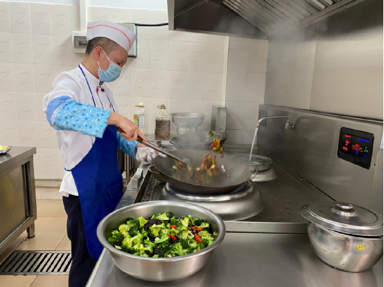 項目廚師老何,今年才年近40,卻是已經有著20多年豐富廚師工作經驗,他身高不算高大卻有著健碩的身材,每天臉上始終掛著和藹的笑容,無論誰見到他總能感到一股樸實的溫暖。可能是記憶中掌握的菜譜太多,或許是身懷“獨門妙技”,如今“聰明絕頂”的他不知是否還懷念曾經那個青絲少年。