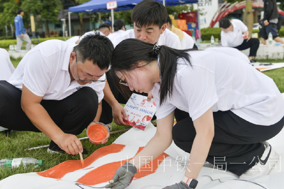 活動通過輕松有趣的破冰游戲環節,使來自不同項目、不同部門、不同崗位的員工們迅速拉近了彼此的距離。大家分成了六組小隊共同參與“夢想巨畫”活動。這是一項需要每個團隊相互協助合作完成的項目,巨幅畫作被分成6部分,每部分由不同的團隊負責完成一塊區域。在繪制巨畫的過程中,各組隊伍還要分別派出代表到“闖關區”挑戰“群龍取水”“齊心協力”“黨連你我”等任務,獲得“貨幣”,再用“貨幣”為本團隊“購買”繪畫物資,寓意中鐵一局一公司高質量發展的每一步、每個環節都需要努力奮斗、團結配合才有成果。