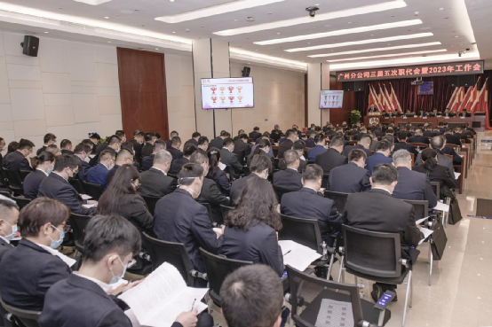 廣州分公司全體領導,職工代表、列席代表等130余人參加會議,會議設視頻分會場連線至公司各單位。