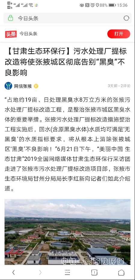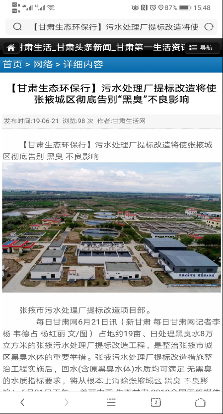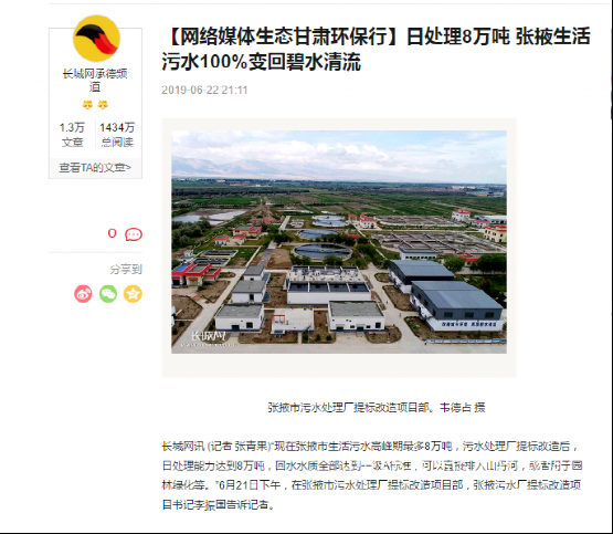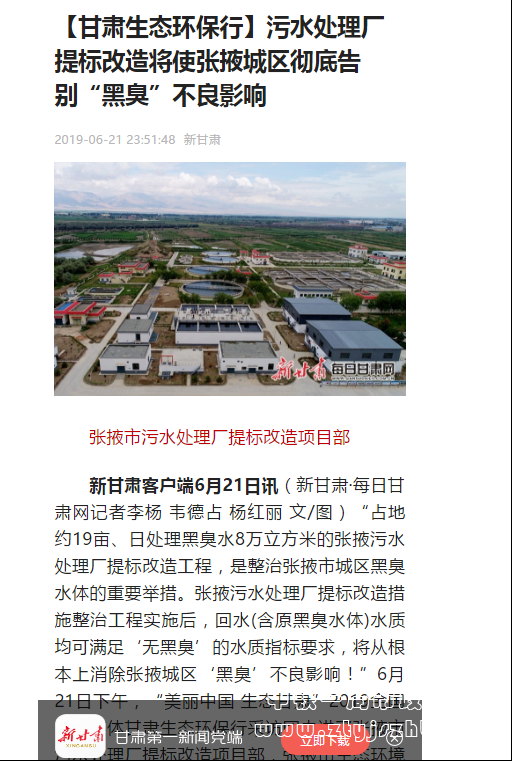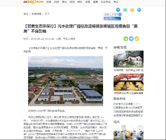 各大媒體報(bào)道:張掖污水處理廠提標(biāo)改造項(xiàng)目