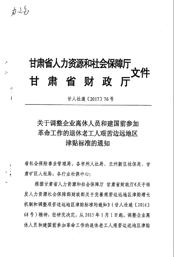 關(guān)于調(diào)整企業(yè)離休人員和建國前參加革命工作的退休老工人艱苦邊遠地區(qū)津貼標準的通知