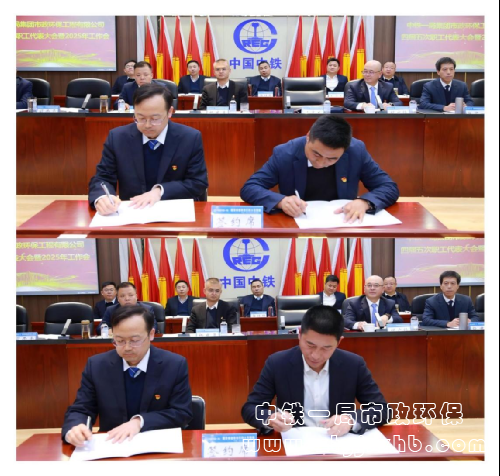與會代表分團討論了《行政工作報告》等,以網絡測評和票決的方式,完成了領導班子民主測評、述廉議廉等測評。大會審議通過了《2024年集體合同履行情況報告》等各項報告。楊慶勇代表企業方,公司黨委副書記、紀委書記劉正旗代表職工方,共同簽訂了《2025年集體合同》。仇志龍分別與蘭合鐵路項目、昆明水廠項目簽訂了2025年《安全質量環保責任書》。