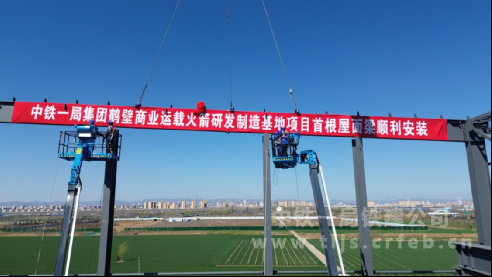 中鐵一局鶴壁市淇濱區(qū)商業(yè)運載火箭研發(fā)制造基地項目首根大型鋼結(jié)構(gòu)主梁成功吊裝