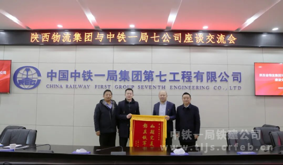 陜西省物流集團(tuán)航創(chuàng)中心向中鐵一局七公司贈送錦旗并開展座談