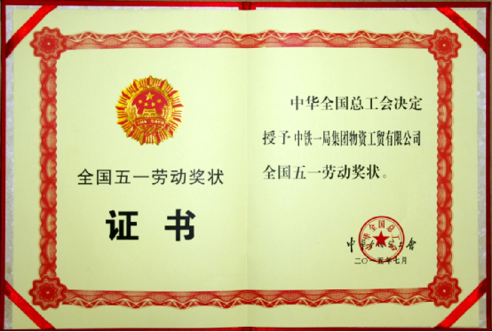 全國五一勞動獎狀證書