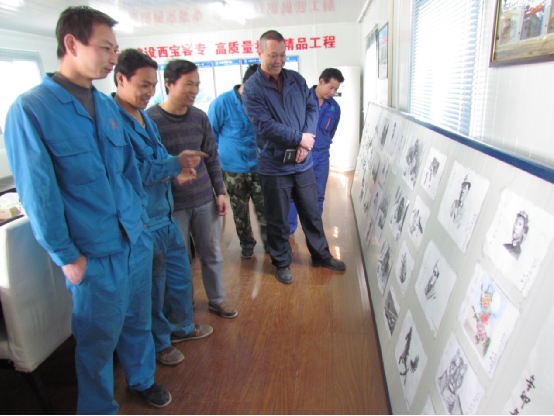 農民工在工地舉辦畫展