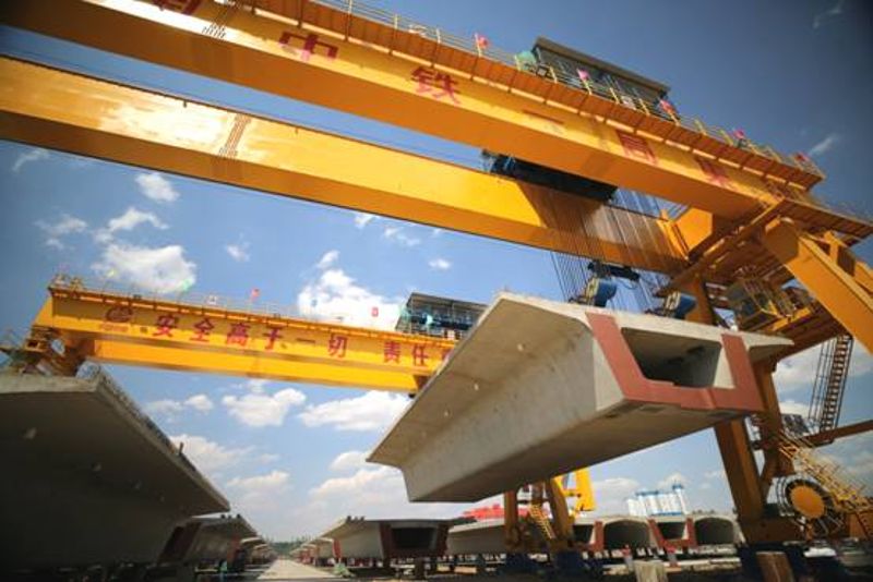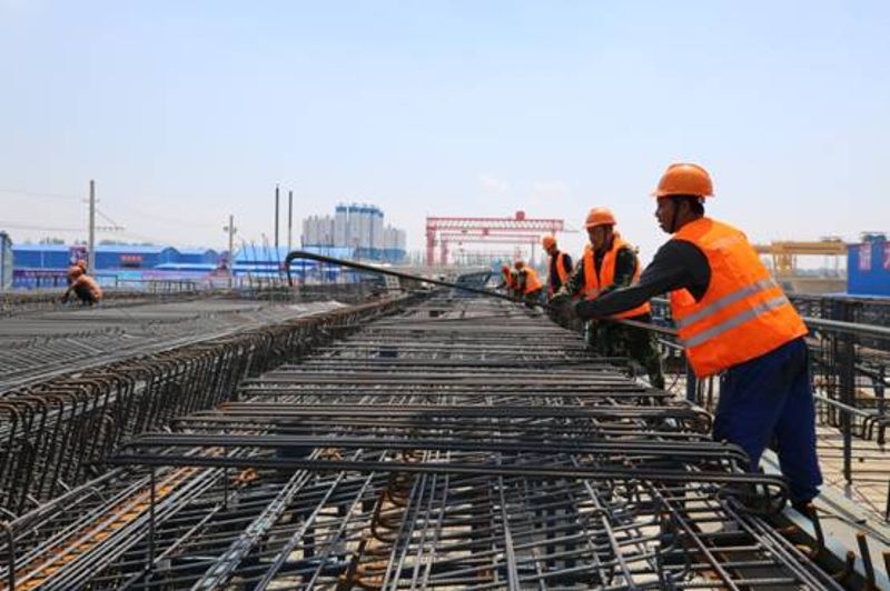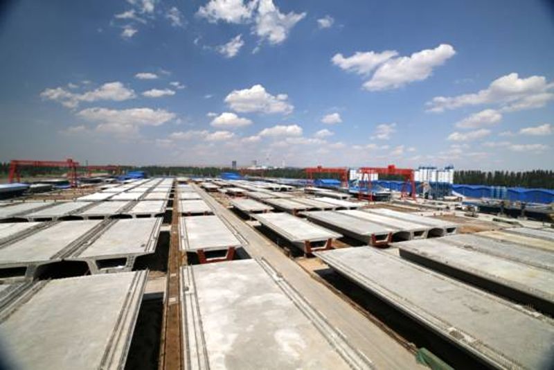從2016年9月10日進場以來,7天完成400余畝征地任務,11天完成試驗室儀器標定校驗工作,45天成功預制首孔箱梁,2017年1月22日,梁場以優(yōu)異的成績一次性通過國家生產(chǎn)許可認證審查。3月底,梁場最高日產(chǎn)達到5孔,現(xiàn)在,梁場正以每天預制6孔梁的速度向前推進。