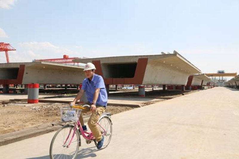 梁場面積大,現(xiàn)場檢查一圈就得近一個小時。手機計步器顯示,大家每天的步數(shù)都在3萬步以上。步行已經(jīng)無法滿足施工的節(jié)奏,為了提高工作效率,項目部還專門為技術人員配備了電動車和自行車。