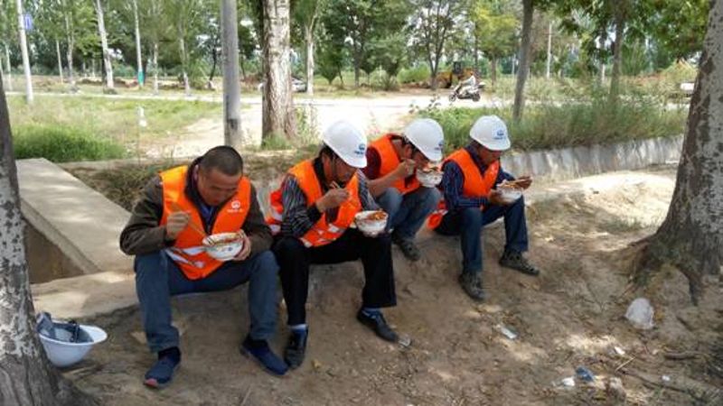 梁場場地遠離村莊,沒電沒水沒住處。項目便為500余名參建人員搭建了10個簡易帳篷臨時落腳?,F(xiàn)場起灶,給職工和外協(xié)工一起供飯。當時正是風沙季節(jié),兄弟們坐在地上就著泥沙吃著大鍋飯,大家一起吃,一起住,一起勞動。