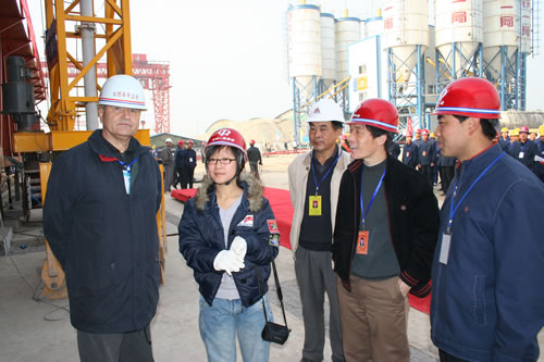 面對重重困難,梁場員工們在項目經理趙斐,書記李力,副經理丁建峰,總工曹新剛帶領下,發揚“亮劍”精神,瞄準高端技術瓶頸,成立了QC技術攻關小組,由項目總工曹新剛掛帥,有關技術骨干日夜攻關,他們依據以往的生產經驗,查閱了大量的國外有關技術資料,通過小規模的試驗,取得了關鍵環節上的技術突破。相繼攻克了一次連續灌注328立方高性能混凝土技術;整體內外模板施工技術;大噸位鋼筋的綁扎、安裝、吊裝技術;900噸箱梁4支點不平整度小于2毫米的移運技術;高性能耐久混凝土的施工控制技術等五項技術難題。項目部制定了詳細的工藝細則、工法規范和制度規定,并進行認真研討論證,各項準備工作項目經理趙斐、副經理丁建峰、總工曹新剛都要親自參加。拌合站運轉,混凝土泵輸設備,內外模就位,鋼筋裝吊,試運轉、試拼、試吊、試拌情況等,第一手資料都要親自掌握。對人力配備是否充分,操作過程工具備件是否齊備都充分認真地考慮安排。為了取得混凝土最佳配比,副經理丁建峰同試驗室員工一起熬了幾個通宵直到取得理想結果。為了確保萬無一失,對投產灌注過程可能出現的意外都事先制訂了應急預案。