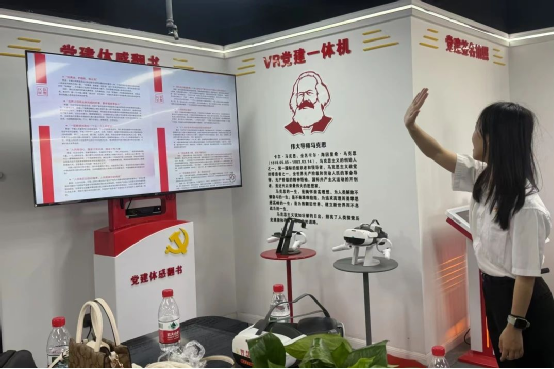 在黨建體感翻書區(qū)域,團員青年們親身體驗了現(xiàn)代科技與黨建元素的深度融合。無需手動翻閱,僅通過簡單的體感操作,黨的歷史知識、重大事件便在眼前徐徐展開。