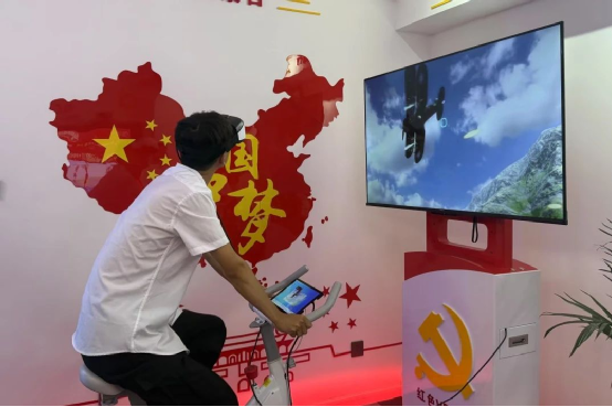 最令人心潮澎湃的當(dāng)屬 VR 紅色騎行體驗。青年們戴上 VR 眼鏡,踏上動感單車,瞬間穿越時空。南湖紅船的晨曦、井岡山的烽火、延安的窯洞依次在眼前浮現(xiàn),每一次踩踏,都仿佛是與歷史的共鳴。此刻,他們不再只是騎行者,更是歷史的見證者,以獨特的方式感受著革命先輩們的奮斗征程。
