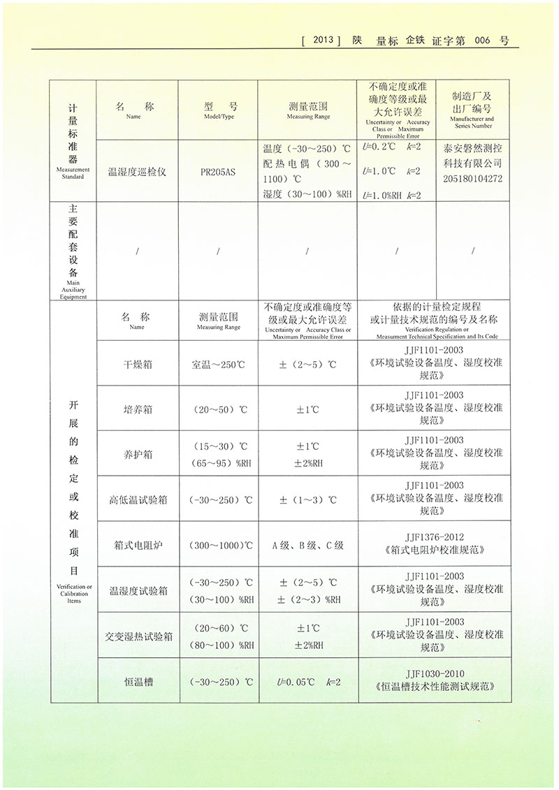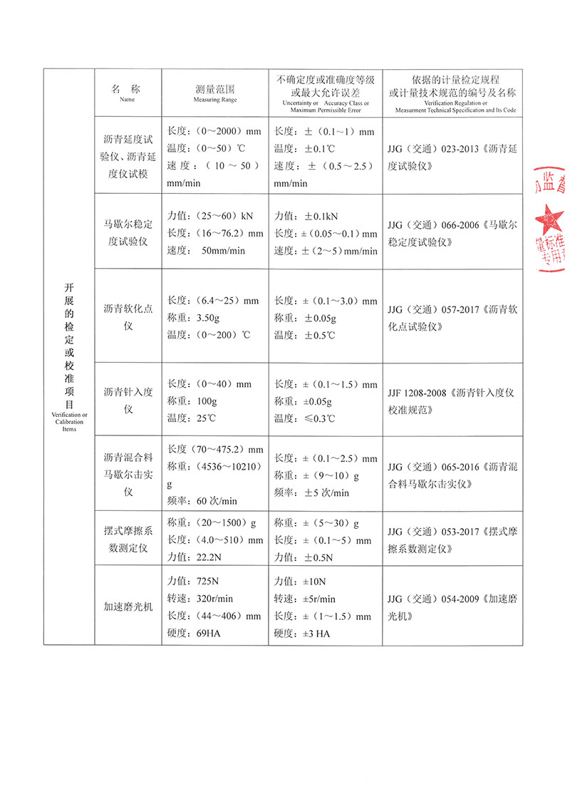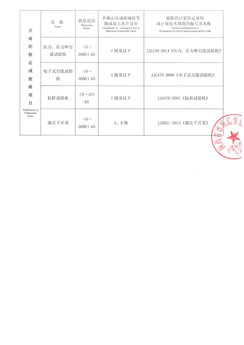 可承擔(dān)力學(xué)、熱學(xué)、化學(xué)、光學(xué)、時(shí)頻、交通建材及鐵路專(zhuān)用儀器設(shè)備的計(jì)量檢定、校準(zhǔn)。