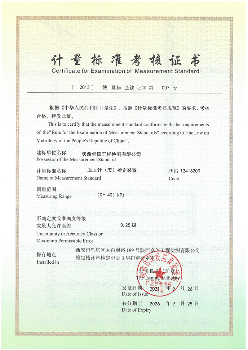 企業(yè)最高計(jì)量標(biāo)準(zhǔn)資質(zhì)