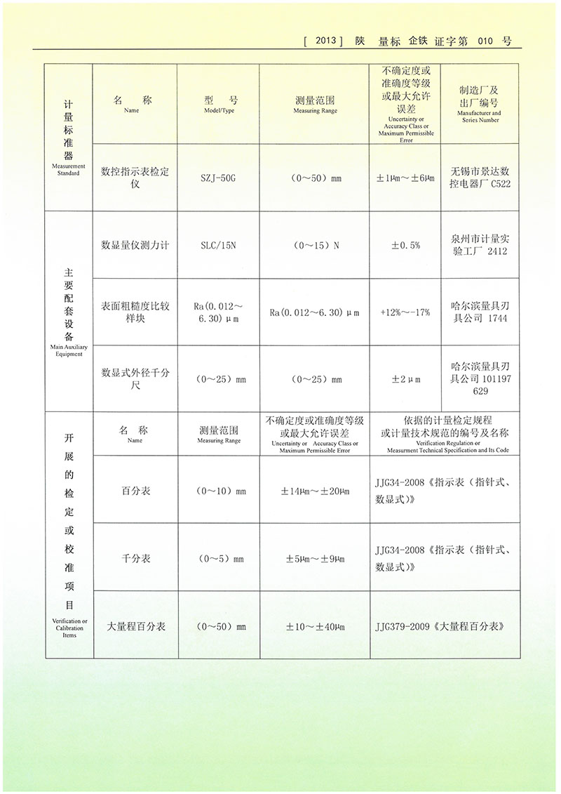 《(2013)陜量標(biāo)企鐵證字第010號(hào)》第2頁(yè)